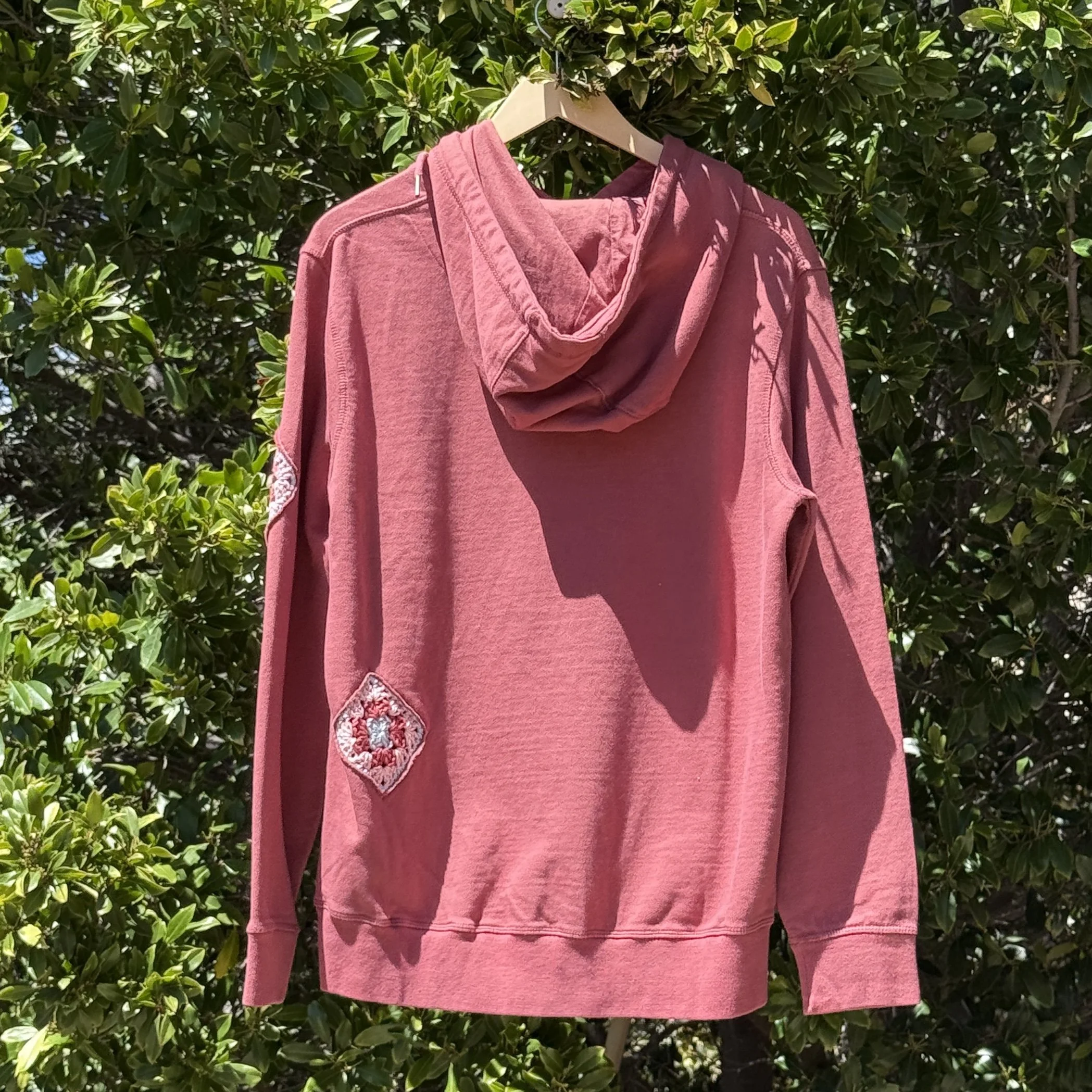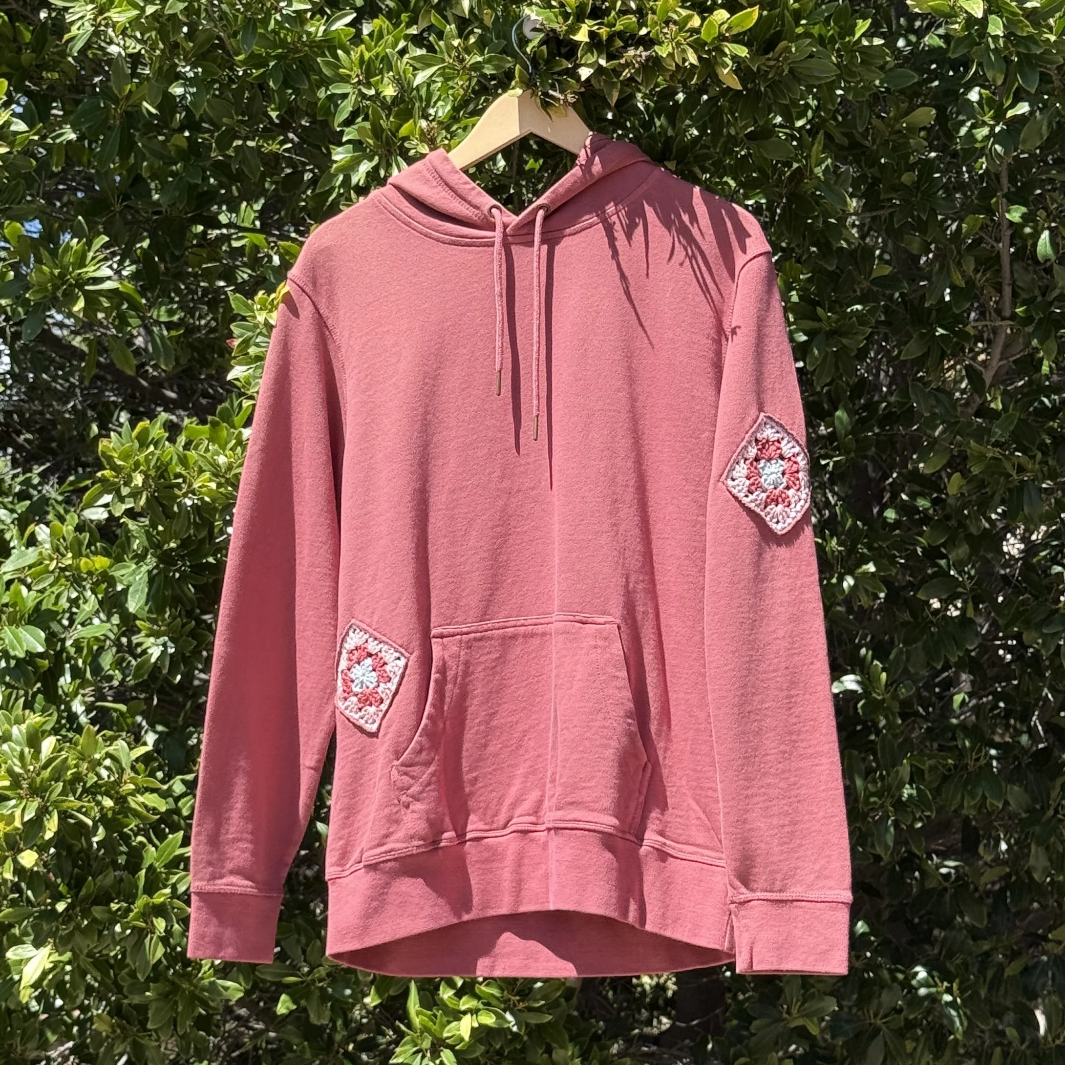 Medium weight terry crewneck sweatshirt decorated with crochet doodles.
