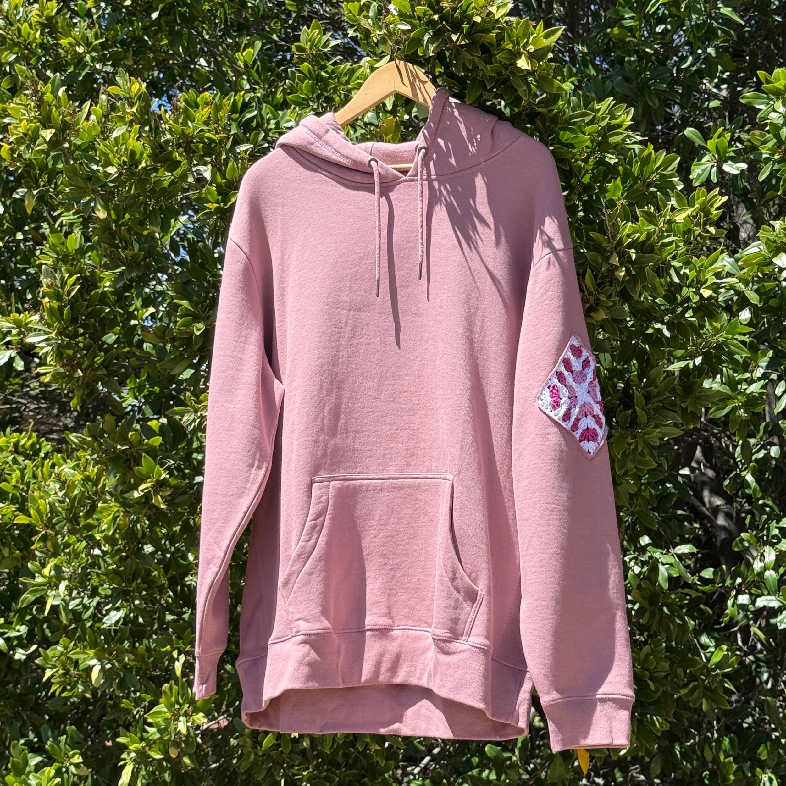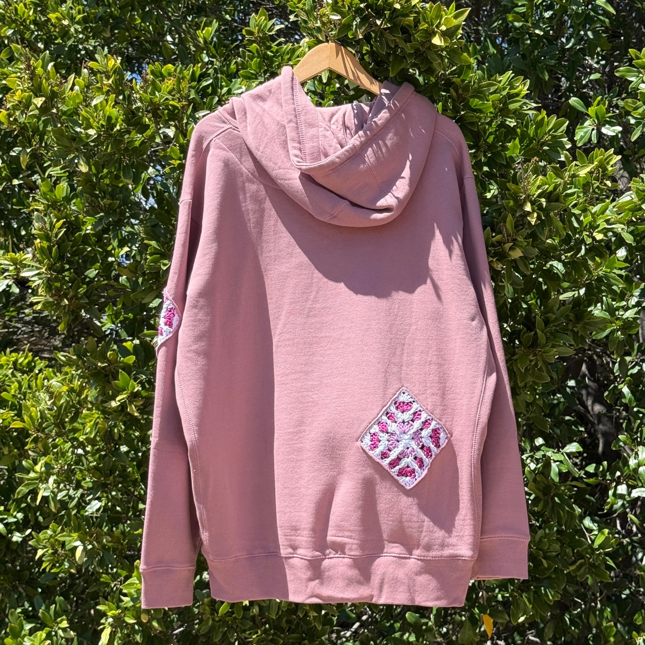 Mauve Hoodie with 2 Granny SQUARES 2XLARGE