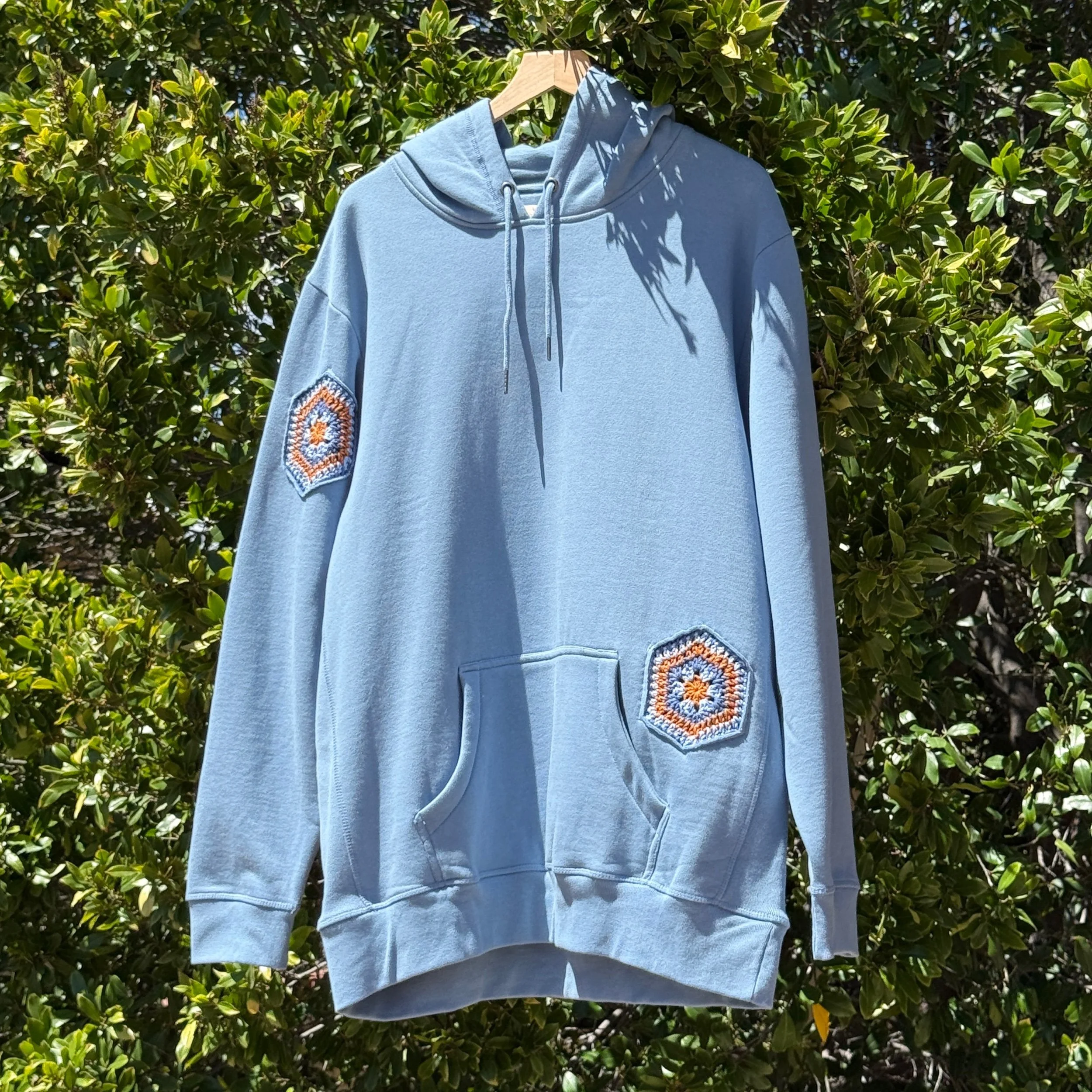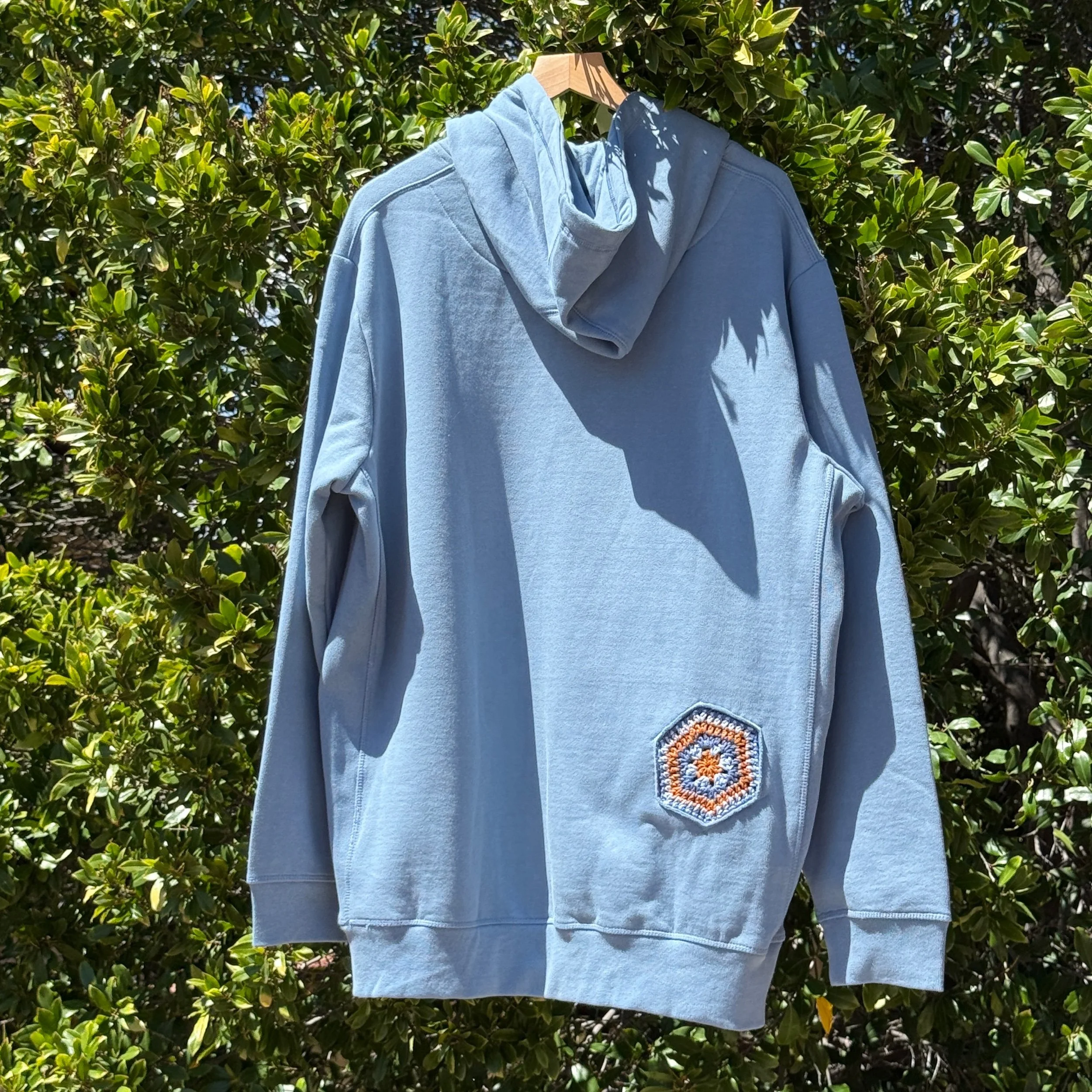 Storm Blue Hoodie with 4 Granny Hexagons XLARGE