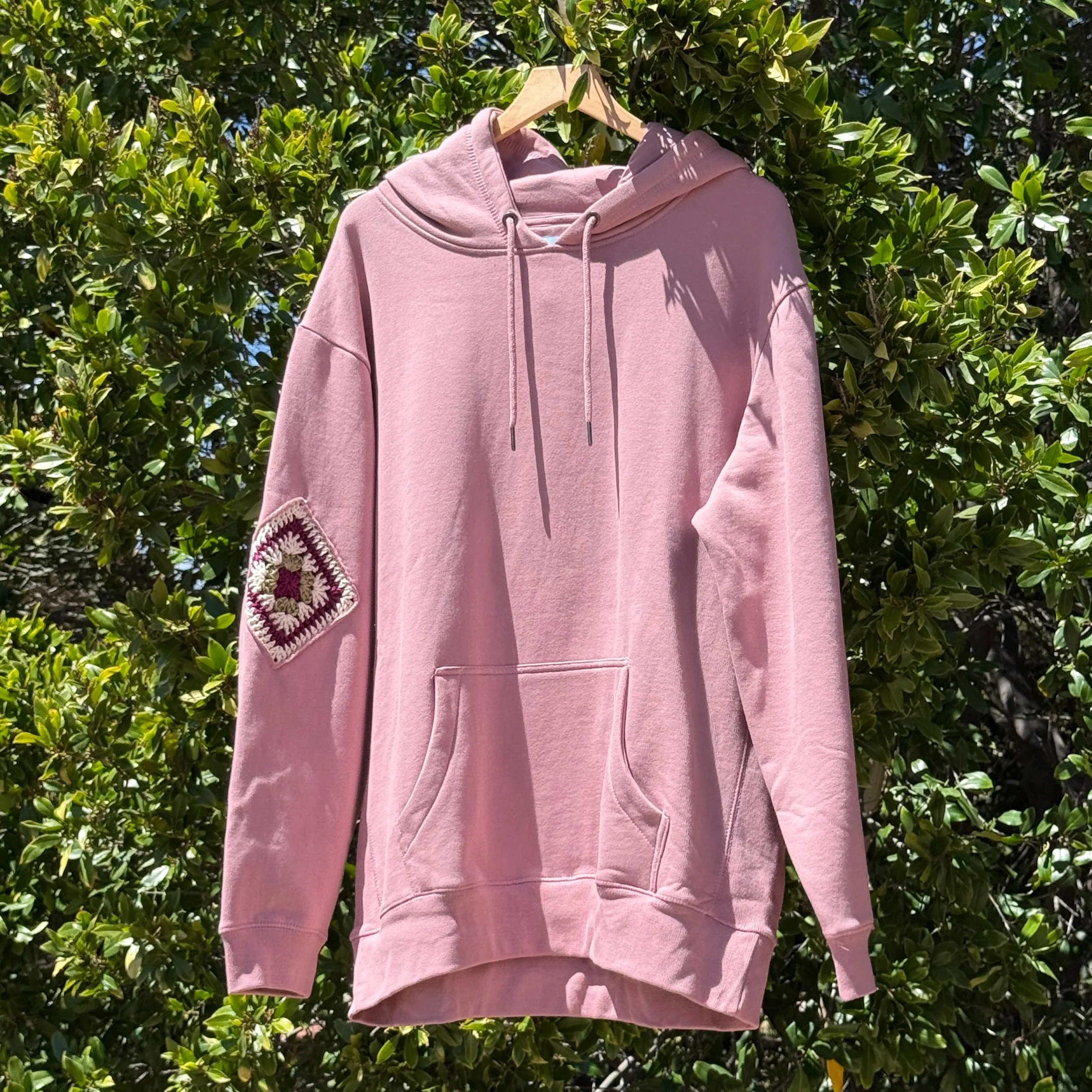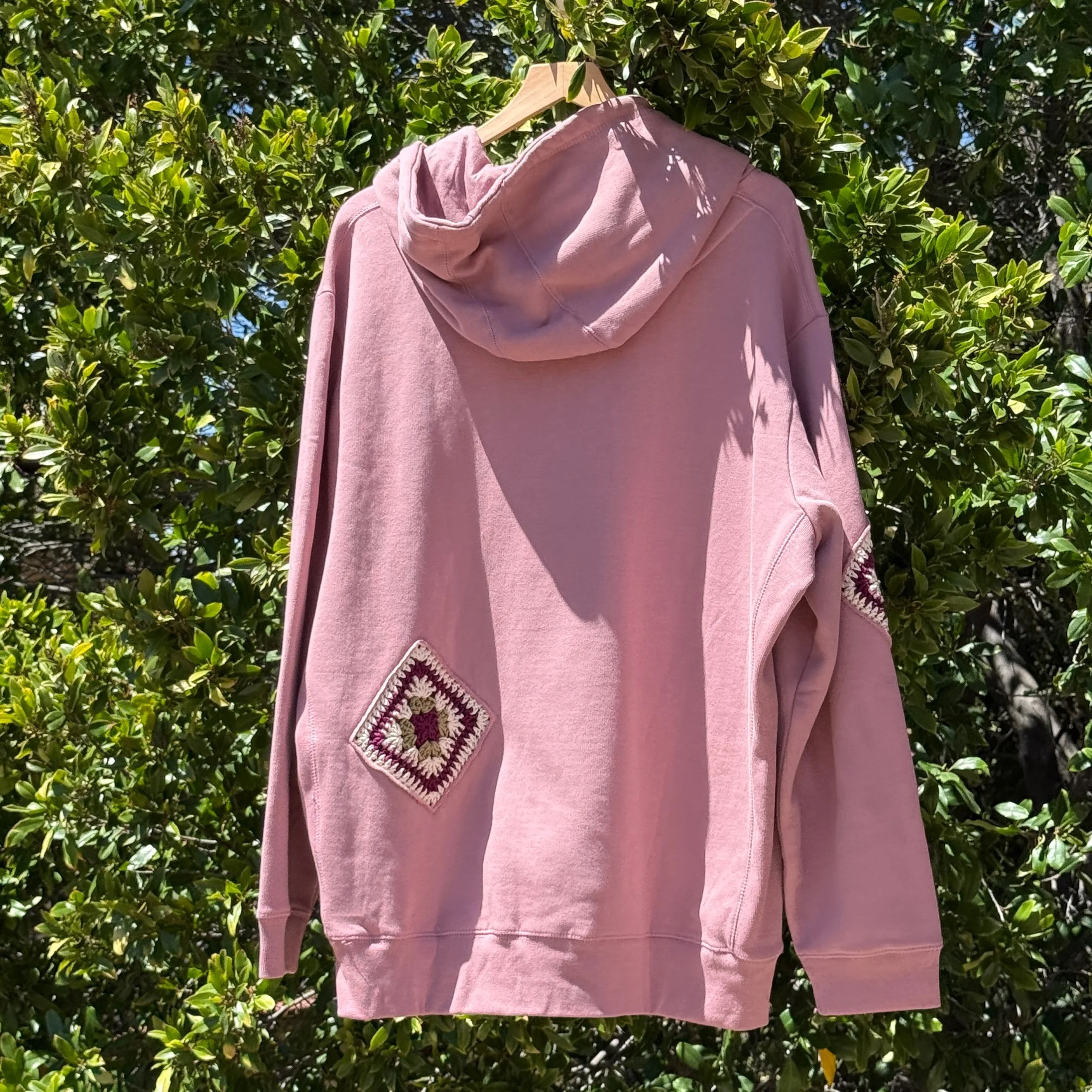 Mauve Hoodie with 2 Granny Squares 2XLARGE