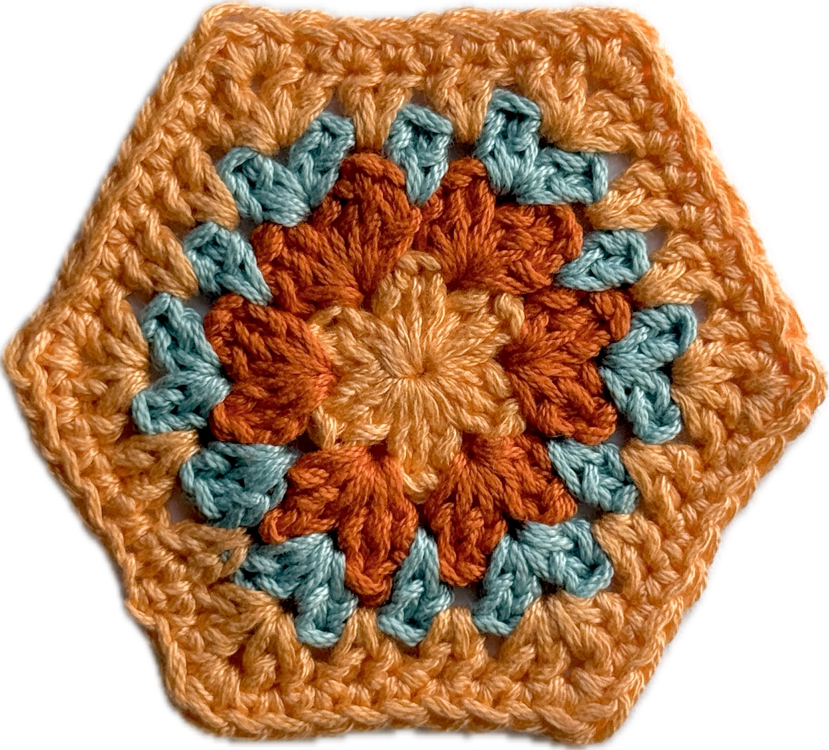 Coral with 2 Granny Hexagons LARGE